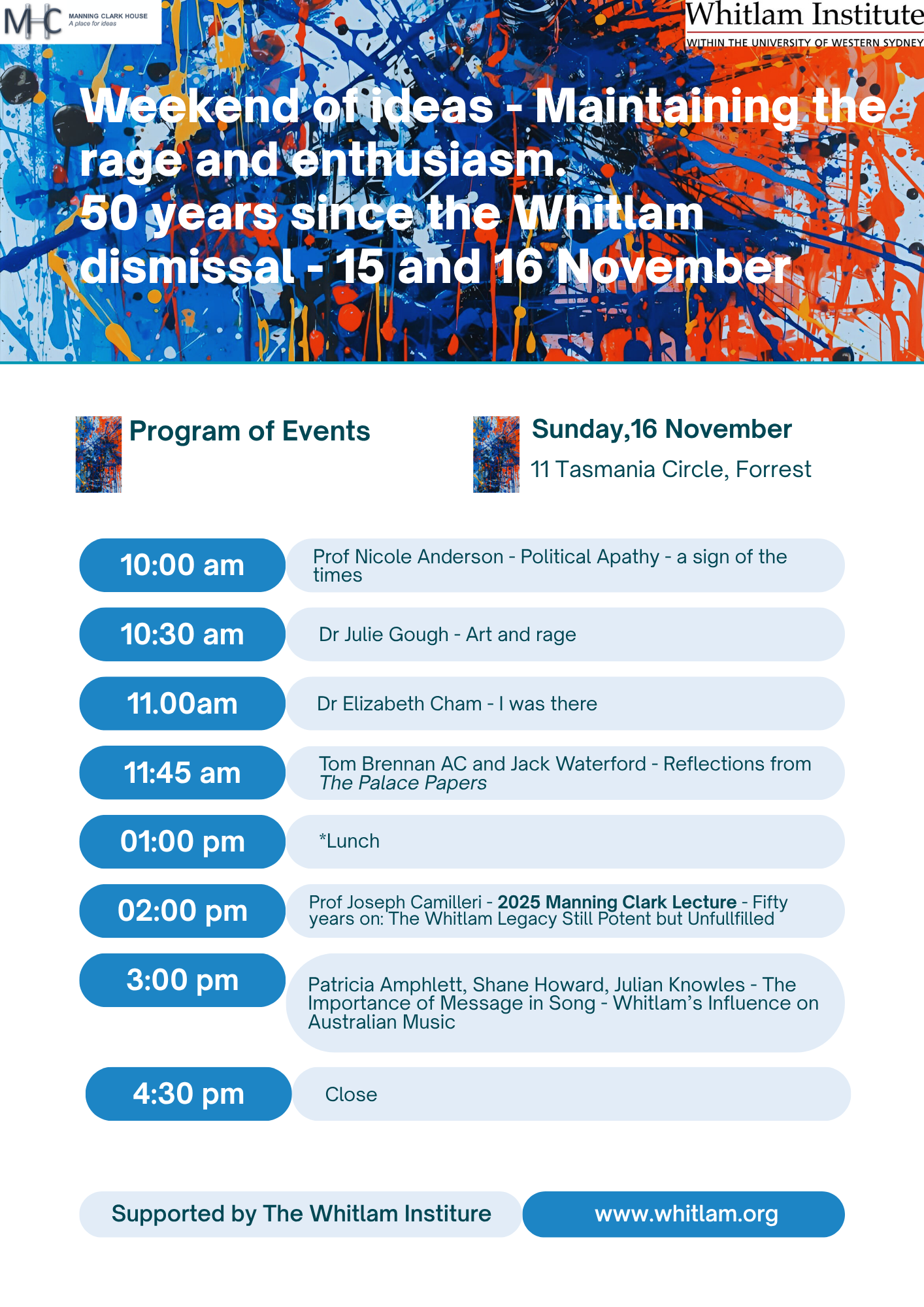 MCH Weekend of Ideas - Maintaining the rage and enthusiasm - 50 years since the Whitlam dismissal